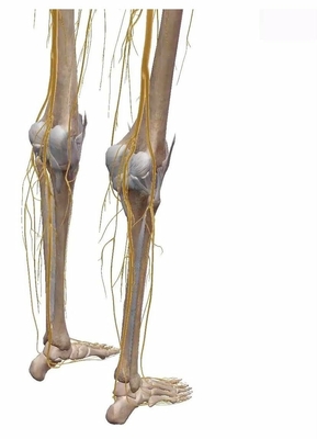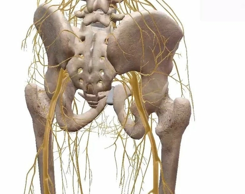 仙骨が後方に変位してその上部の腰椎4、5番も後方に変位して、坐骨神経が引っ張られて