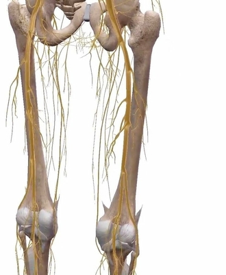 仙骨が後方に変位してその上部の腰椎4、5番も後方に変位して、坐骨神経が引っ張られて
